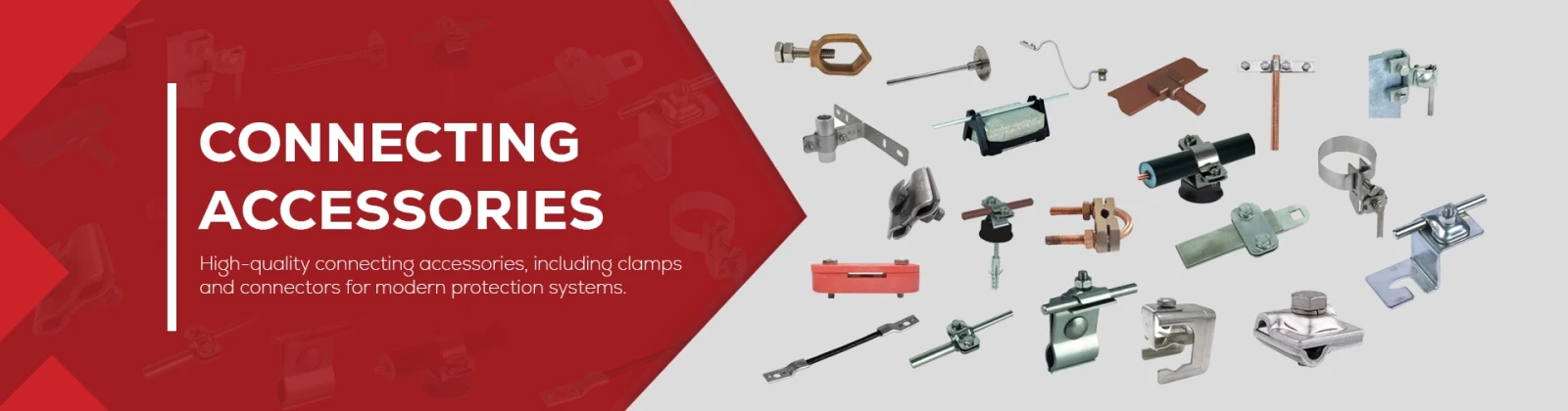Connecting accessories are essential components in earthing and lightning protection systems, ensuring the seamless and effective operation of these safety networks. Designed and tested according to national & international standards such as IEC 62561-1, IEC 62561-4 and IS 3043:2018, these accessories play a critical role in providing robust, reliable connections that enhance the overall performance and safety of the systems. JMV LPS Limited offers a comprehensive range of high-quality connecting accessories, including clamps and connectors, designed to meet the stringent requirements of modern protection systems. Our products are designed to meet the highest standards of safety and performance, making them ideal for a variety of applications across residential, commercial, industrial, and public infrastructure sectors.