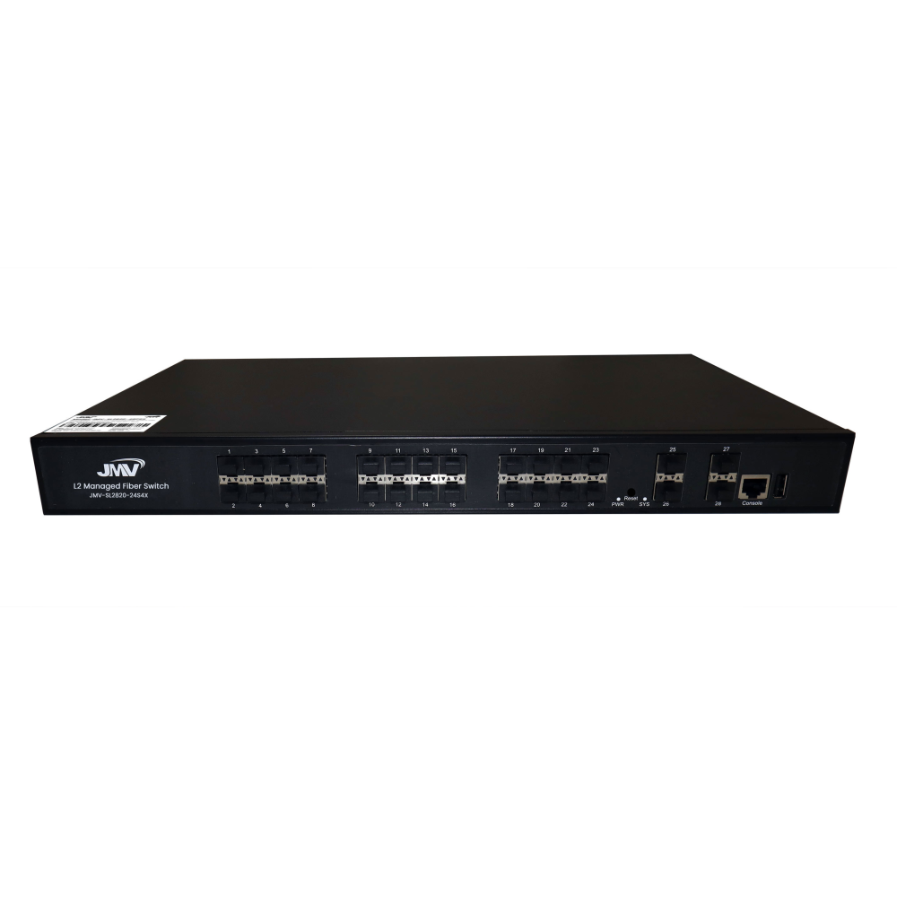 The JMV-SL2820 Series is a next-generation Gigabit Aggregation Layer-2 switch engineered by JMV to deliver high-performance, scalable, and reliable network connectivity. Designed for Internet Service Providers (ISPs), Small and Medium-Sized Businesses (SMBs), enterprises, and campus networks, the JMV SL2820 enables seamless, high-bandwidth service delivery with Gigabit speeds on every port. Built with a focus on high availability, comprehensive security, and advanced Quality of Service (QoS), the JMV-SL2820 series ensures consistent and optimized performance at the network edge. The platform incorporates robust Layer-2 switching features, enhanced multicast control, and IPv6 support, including IPv6 multicast for next-generation network deployments.